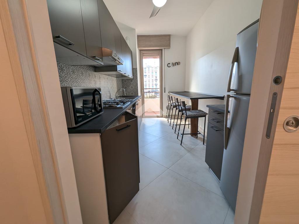L'immobile internamente si presenta ristrutturato, arredato ed è composto da: ingresso, cucina abitabile, 3 camere, 2 bagni e 3 balconi.